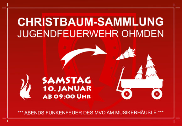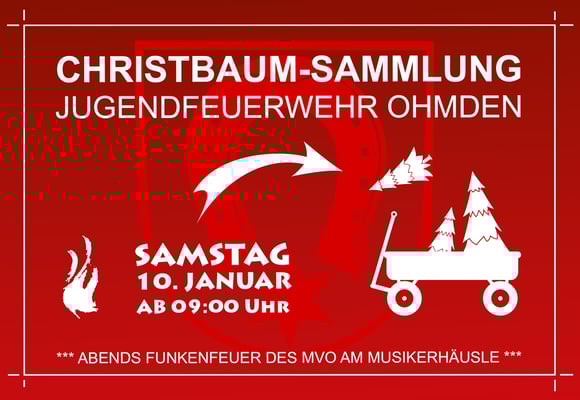 Stellen Sie ihren abgeschmückten Christbaum einfach am Samstag, den 10. Januar bis 09:00 Uhr vor Ihrem Haus ab. Gerne können Sie der Jugendfeuerwehr eine kleine Spende hinterlassen. Falls dies gewünscht ist, bitten wir Sie, einen Hinweis am Baum zu hinterlassen. Wir werden dann an Ihrer Tür klingeln und die Spende persönlich abholen, da wir in den letzten Jahren vermehrt bereits geleerte Spendentüten an den Bäumen vorgefunden haben.