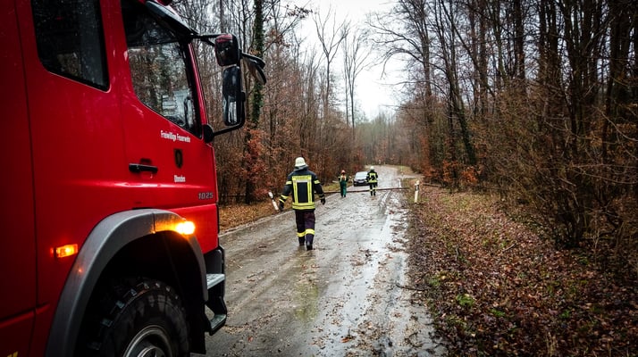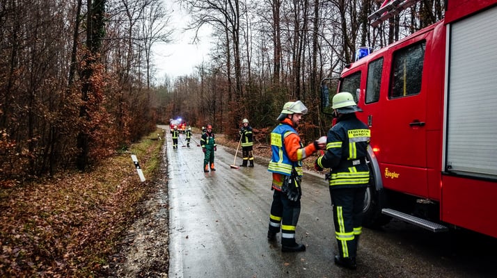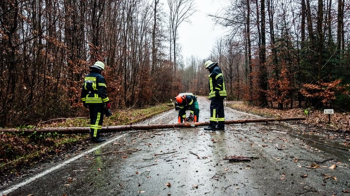 Nach kurzer Rücksprache, mit der bereits angerückten Feuerwehr Schlierbach, beseitigte die Feuerwehr Ohmden den Baum mithilfe einer Kettensäge von der Fahrbahn. Die Kameradinnen und Kameraden aus Schlierbach räumten in der Zwischenzweit weitere umgestürzte Bäume von der Straße. Nach der Beseitigung konnte, eine durch die Bäume kurzzeitig festgesetzte Verkehrsteilnehmerin, ihre Weiterfahrt fortsetzen. Zusätzlich wurden durch beide Feuerwehren zwei Waldwege auf beiden Gemarkungen aufgrund von Sturmschäden vorläufig abgesperrt und die Straße grob gereinigt.